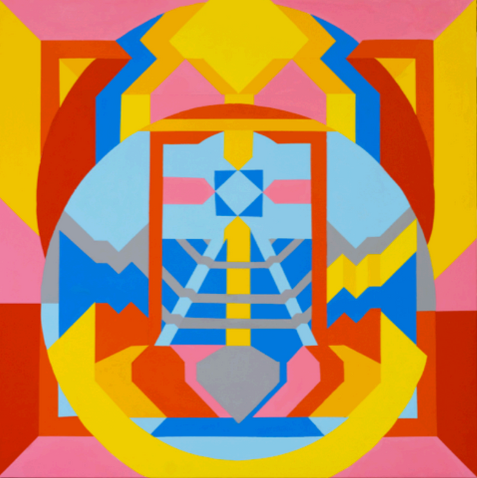 My paintings like my father’s incorporate forms of asymptotes and hyperbolas , serving symbolic representations of my feelings, passion, and inner strength as I embark on my creative journey on canvas. This journey is characterized by geometric shapes and complimentary colors harmonizing with each other, sometimes transcending the two dimensional realm and manifesting in three dimensional forms.